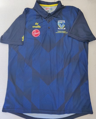 Navy blue shirt with paler blue diagonal strip. CC 2024, 8th June